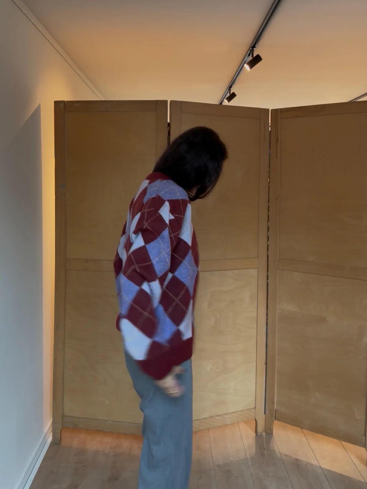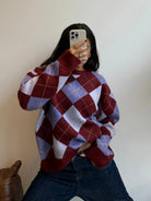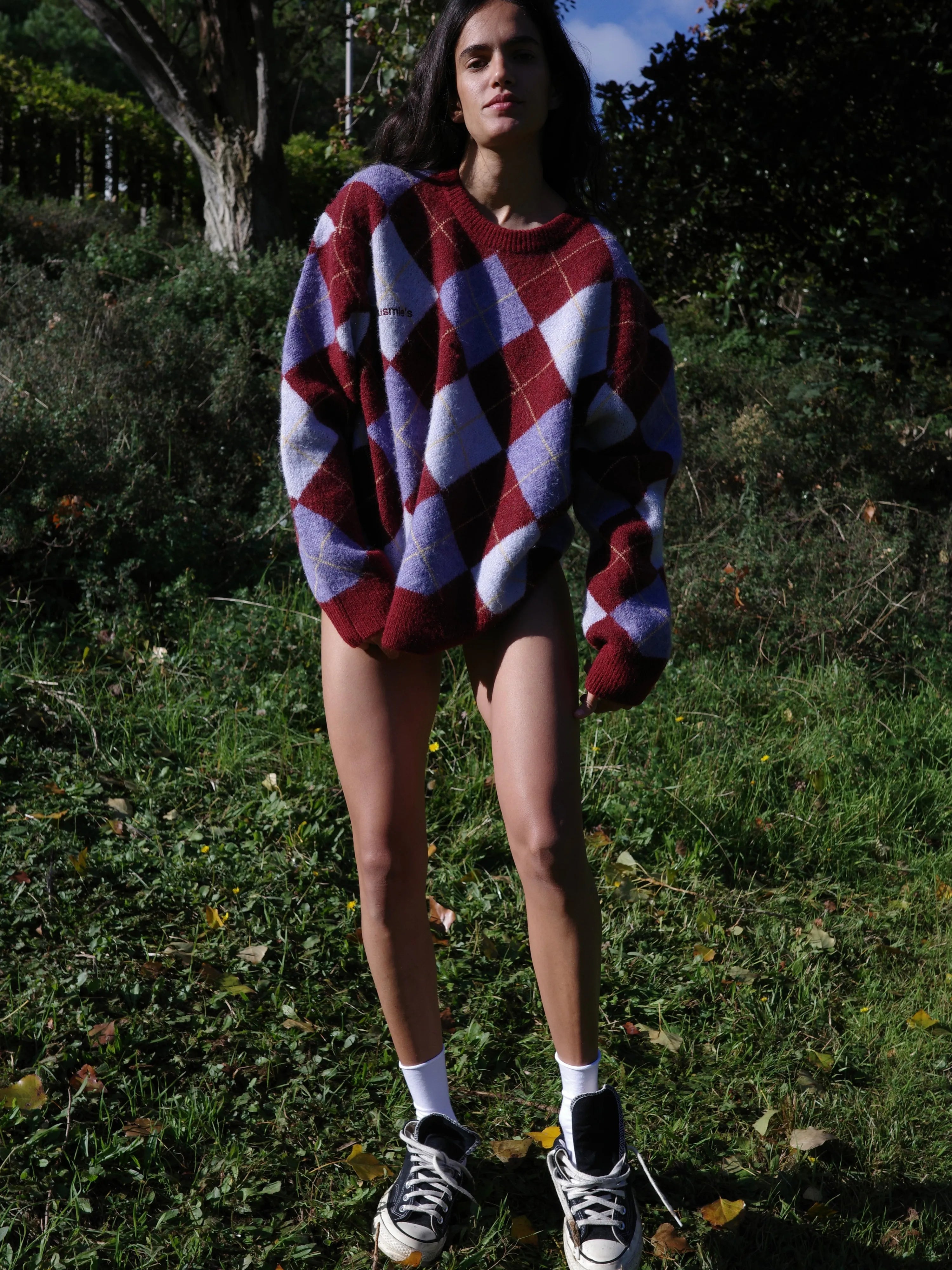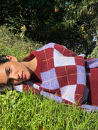 A burgundy and lilac diamond knit that feels like coming home. The one your mother made you wear, the one you now miss on quiet winter afternoons.