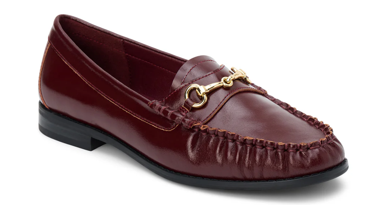 Classic loafer with gold horsebit detail and moccasin-style stitching.