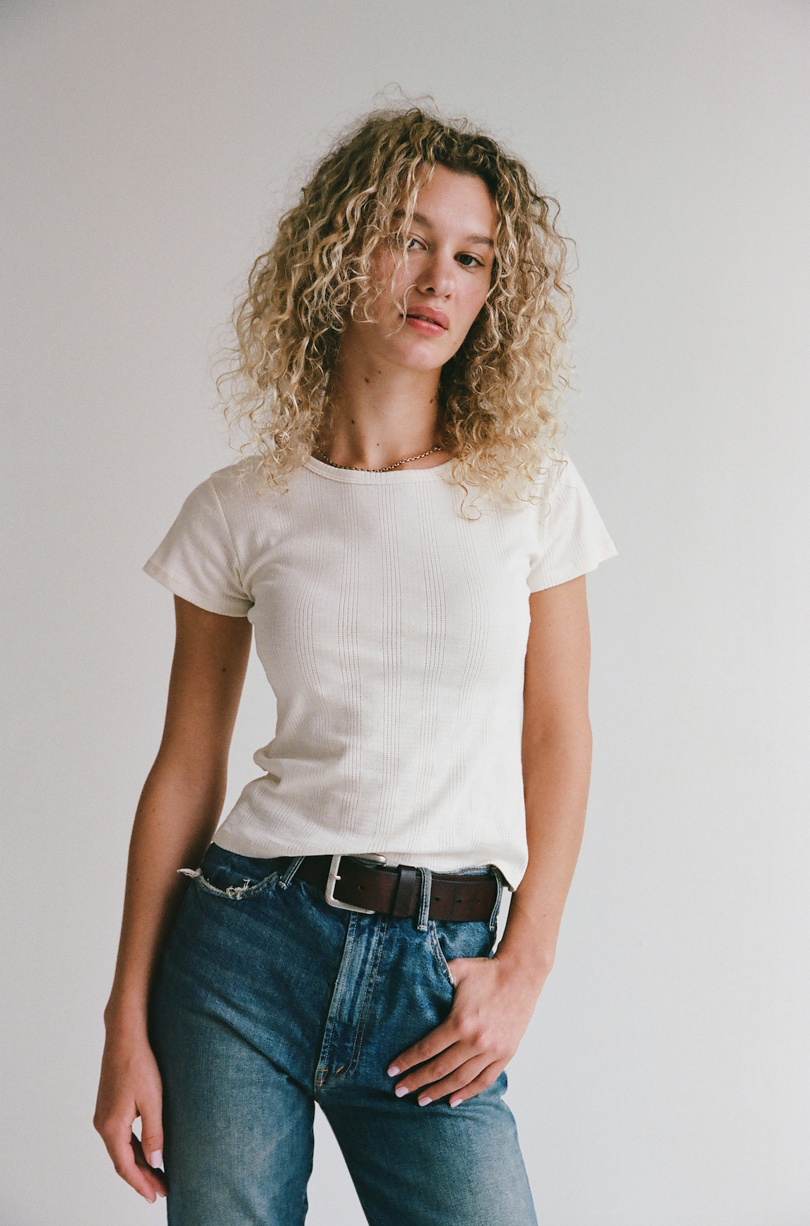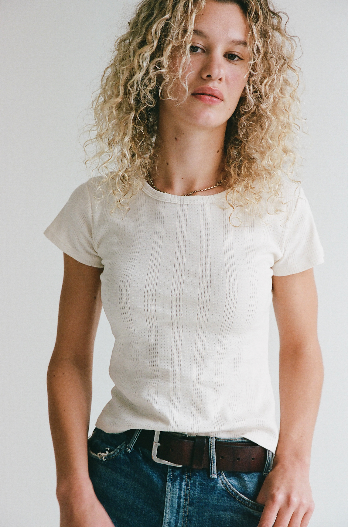 Meet the Perfect T-shirt—slightly fitted, mid-length, and designed to hug you in all the right places. It’s soft, breathable, and hits just above the hips for a flattering everyday fit. Pair it with your favorite denim for an effortless, put-together look.