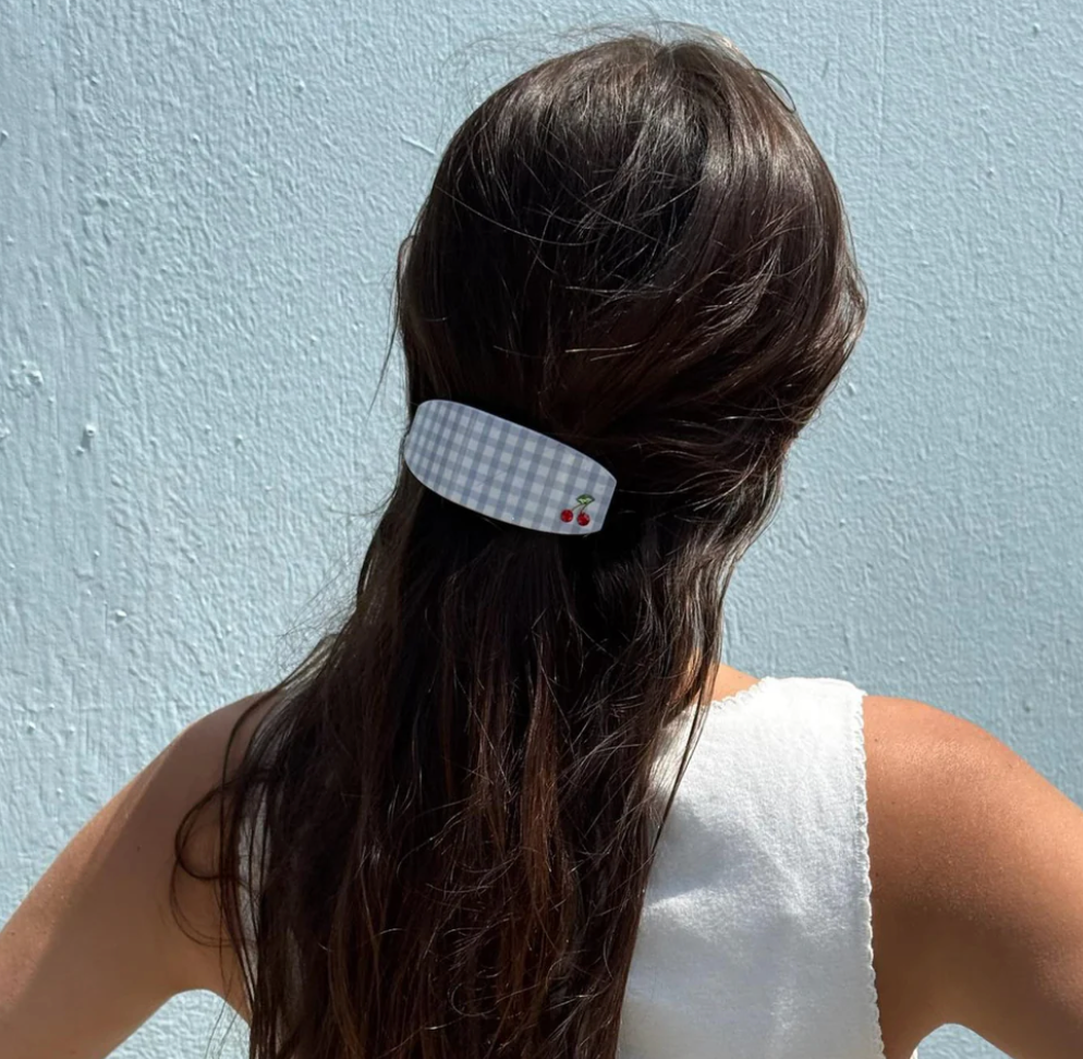 Ponytail Barrette in Blue Cherry Picnic