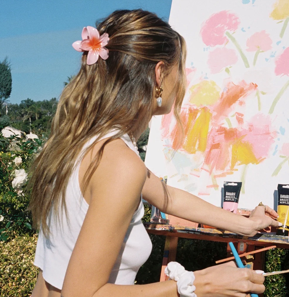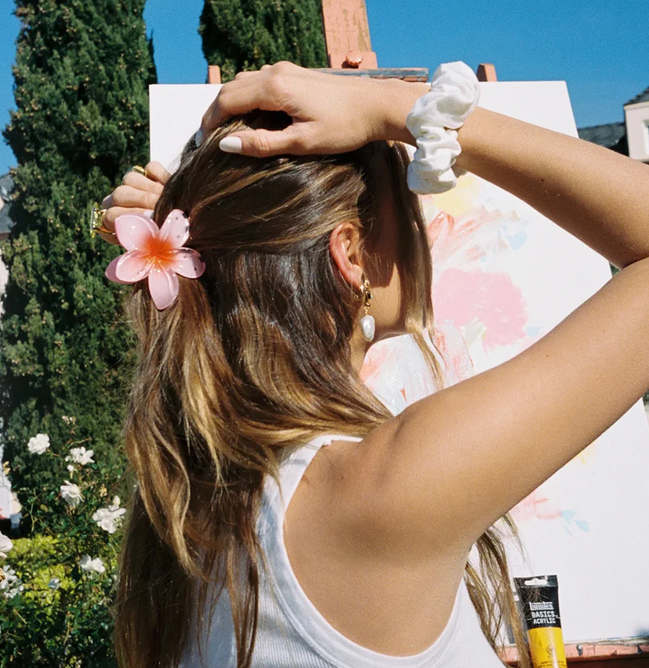 We dream in pearlized pastels. Inspired by the plumeria flower, the super bloom hair claw clip represents love and new beginnings. Effortless yet playful, this pearlescent claw clip is large enough to hold a full head of hair.