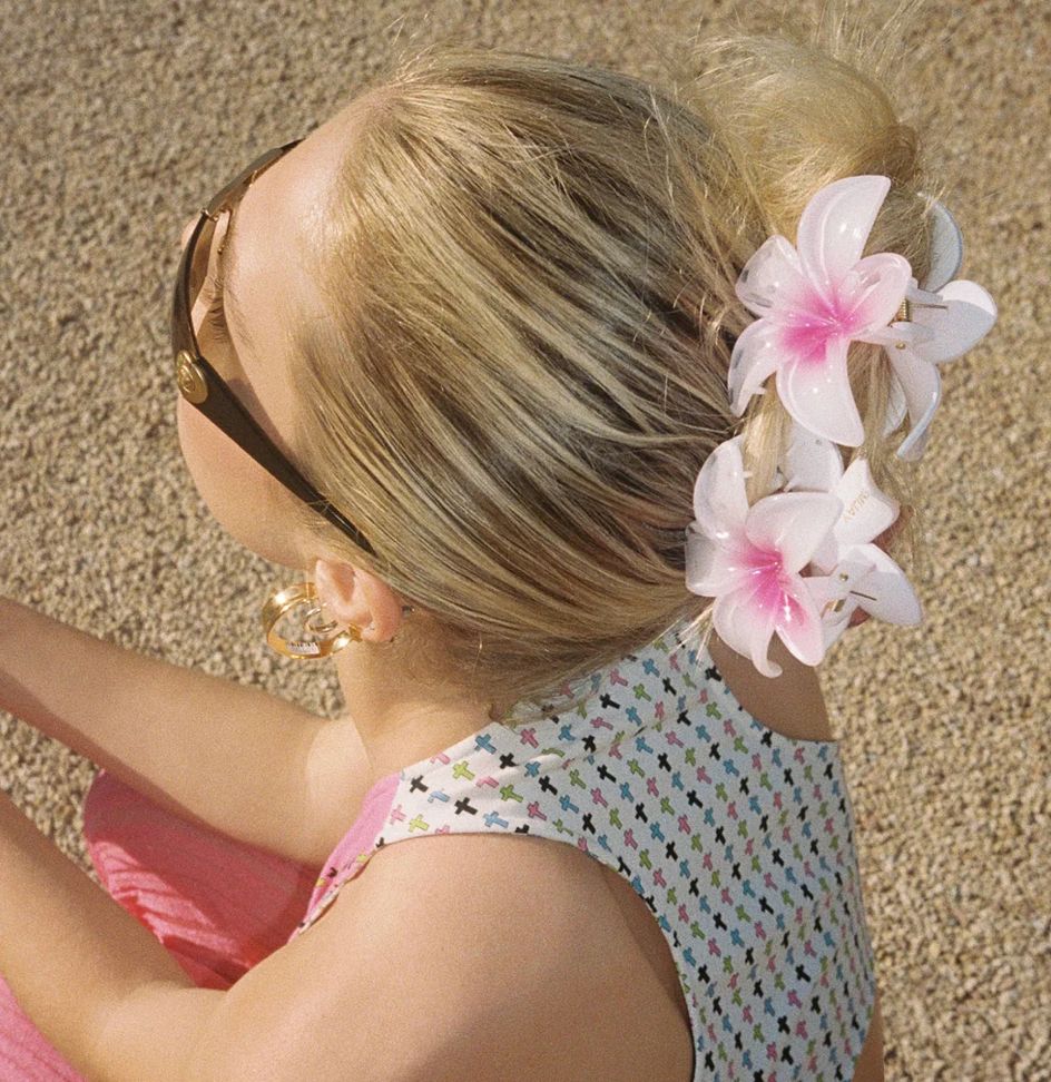 We dream in pearlized pastels. Inspired by the plumeria flower, the super bloom hair claw clip represents love and new beginnings. Effortless yet playful, this pearlescent claw clip is large enough to hold a full head of hair.