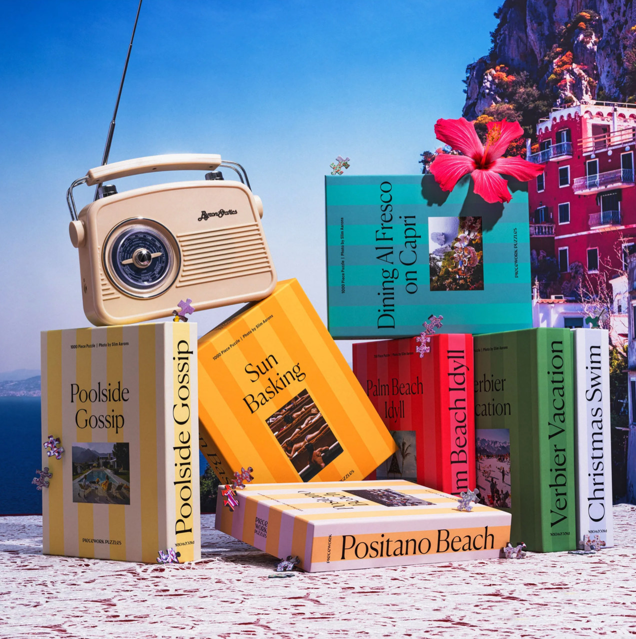 Explore more from the Slim Aarons Puzzle Collection — a bestselling lineup of glamorous escapes reimagined as puzzles, each housed in our signature cabana stripe packaging.