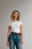 Meet the Perfect T-shirt—slightly fitted, mid-length, and designed to hug you in all the right places. It’s soft, breathable, and hits just above the hips for a flattering everyday fit. Pair it with your favorite denim for an effortless, put-together look.
