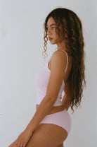 Our scoop back camisole is designed to make an effortless transition from loungewear to a casual going out look. The signature soft, breathable cotton provides comfortable support for every bust size and cropped hem shows just the right amount of tummy. The deep scoop back is the cherry on top. Each tank top features lace trim and a satin rosebud at the center. Pair with high waisted jeans and a unbuttoned flannel for a cute summer look.