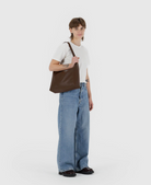Recycled Leather Shoulder Bag in Brown