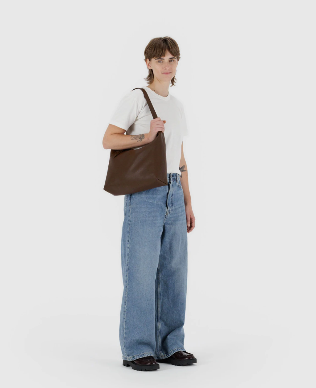 Recycled Leather Shoulder Bag in Brown