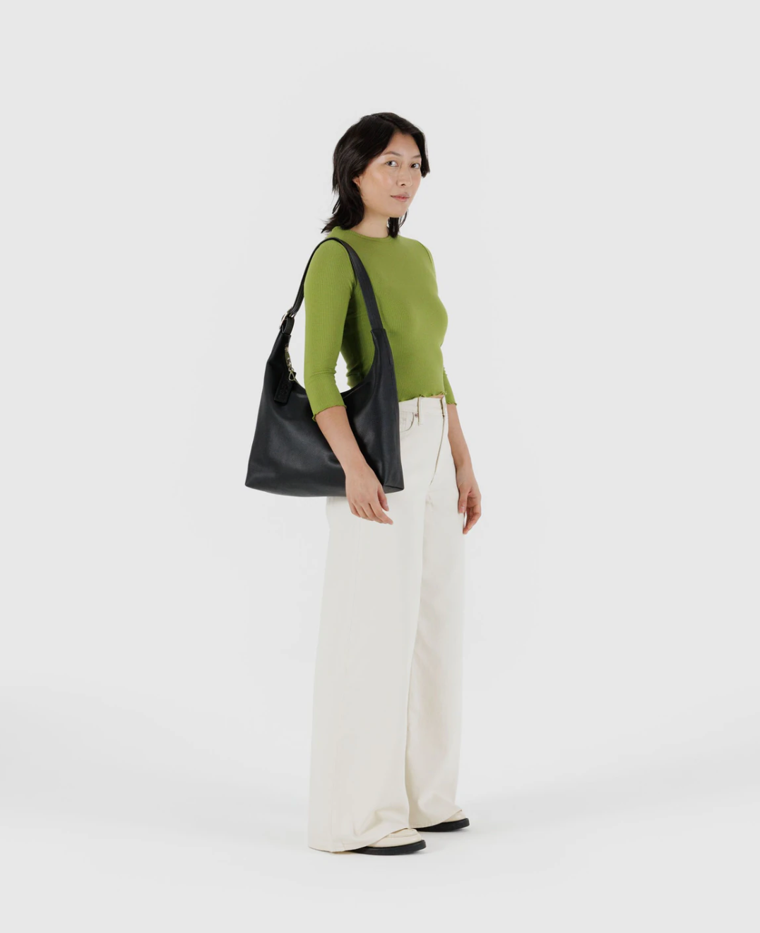 Recycled Leather Shoulder Bag in Black