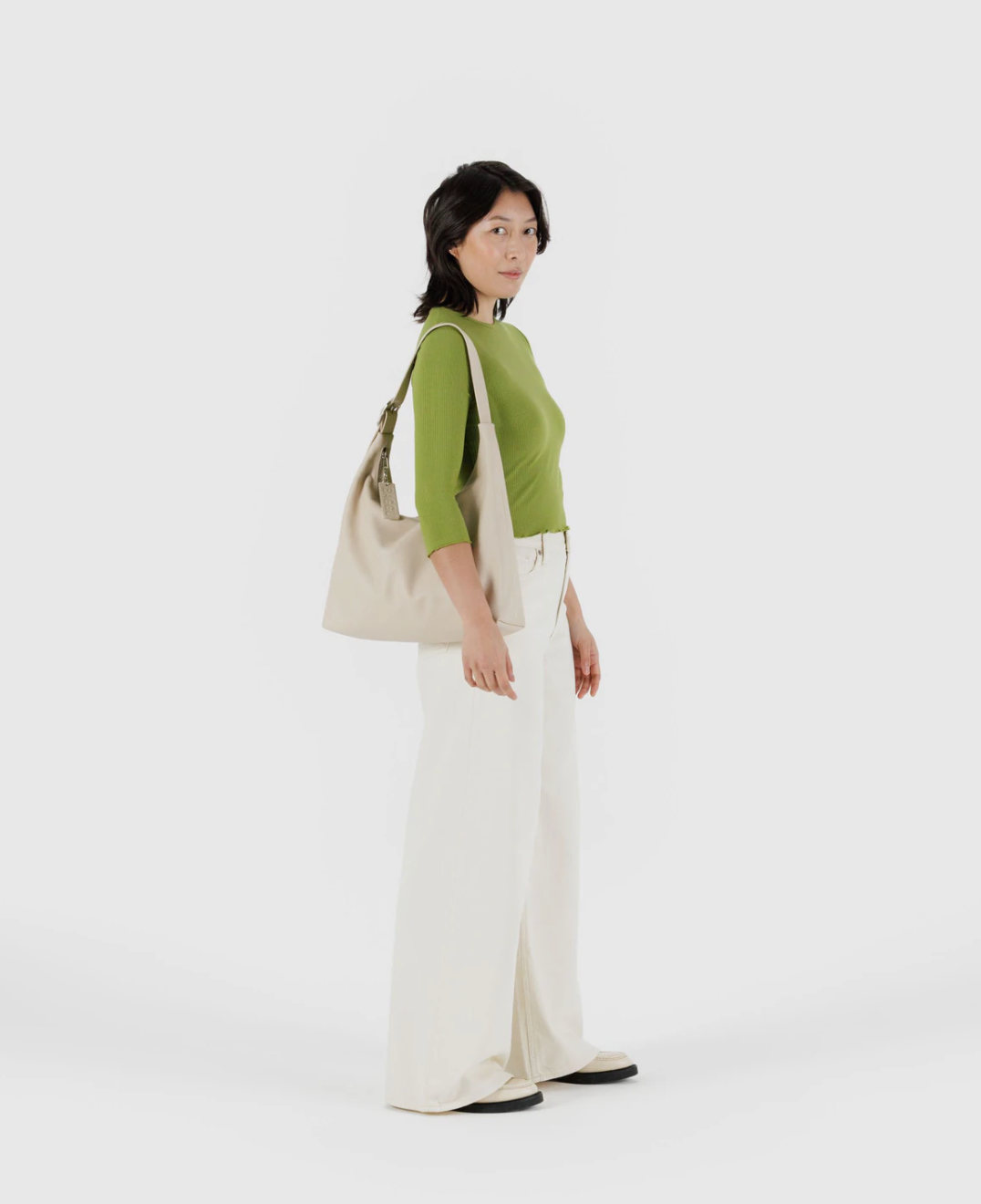 Recycled Leather Shoulder Bag in Stone