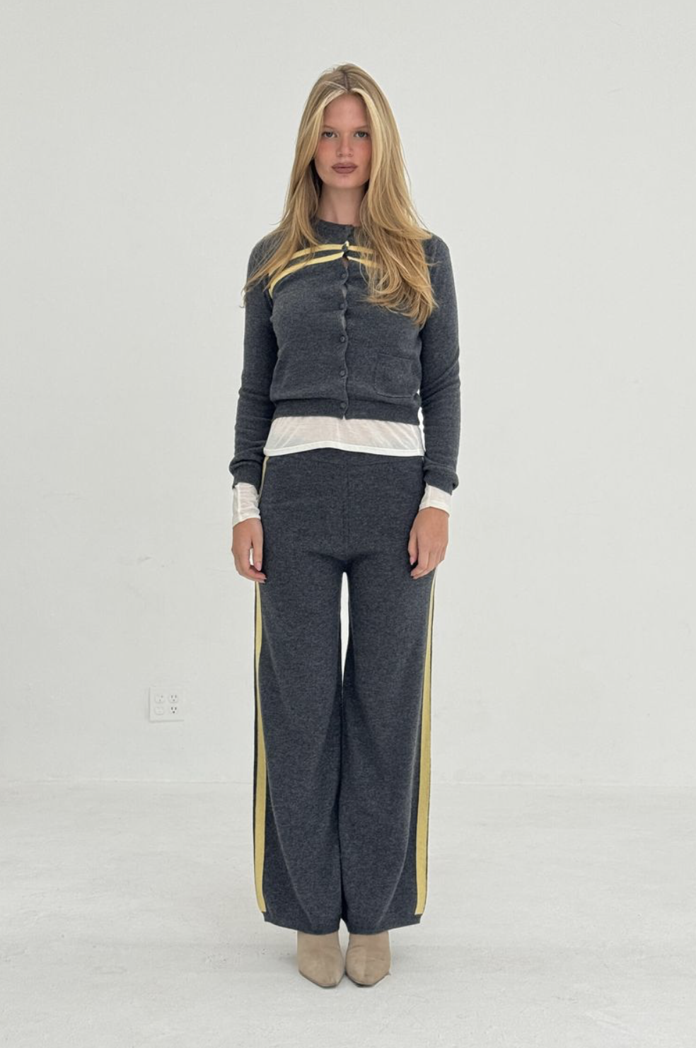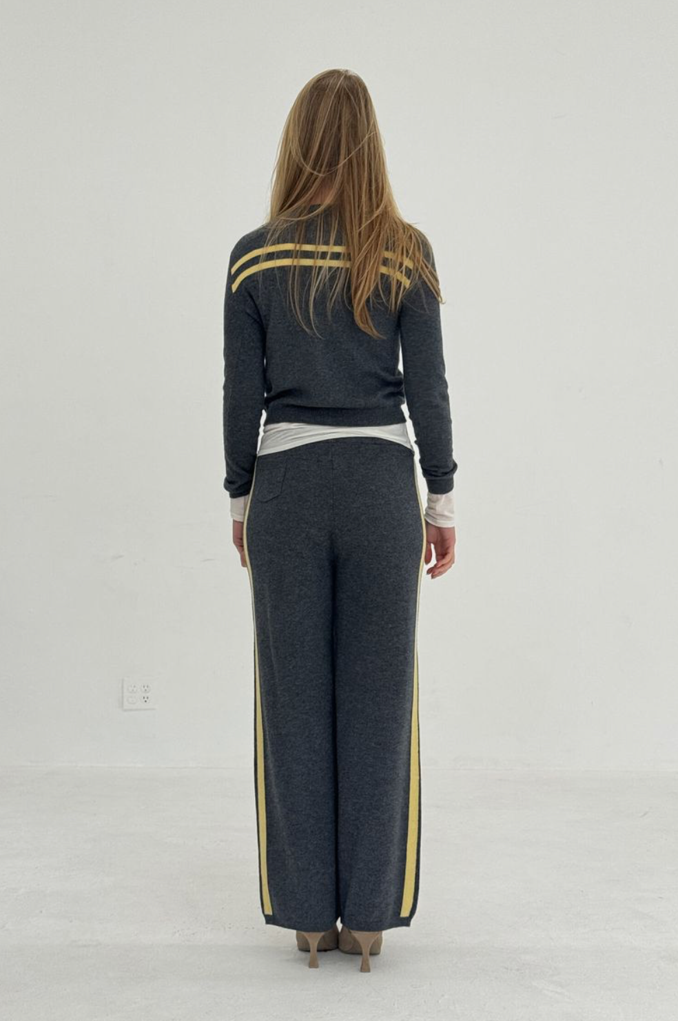 Stripe Knit Pants in Charcoal/Butter