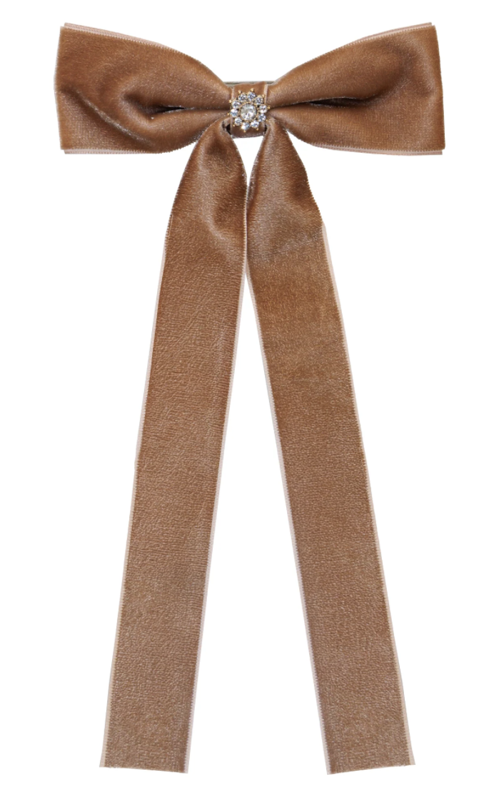 Iconic Velvet Bow Barrette in Mocha Mousse