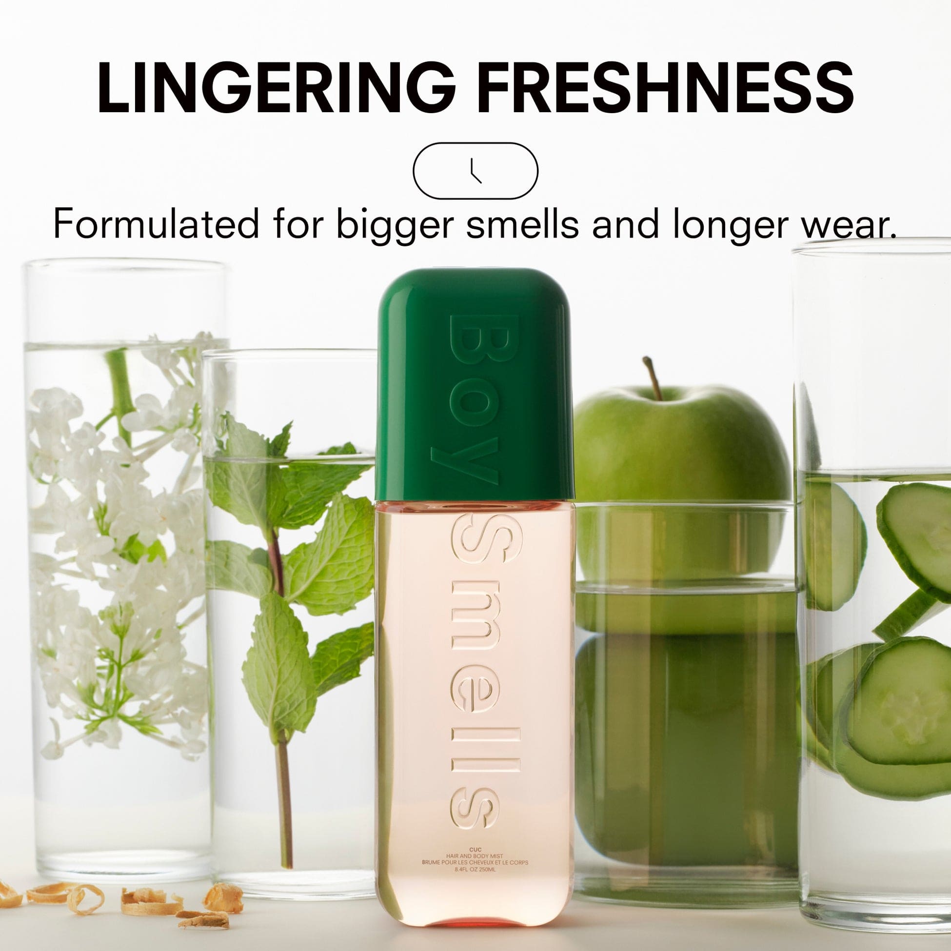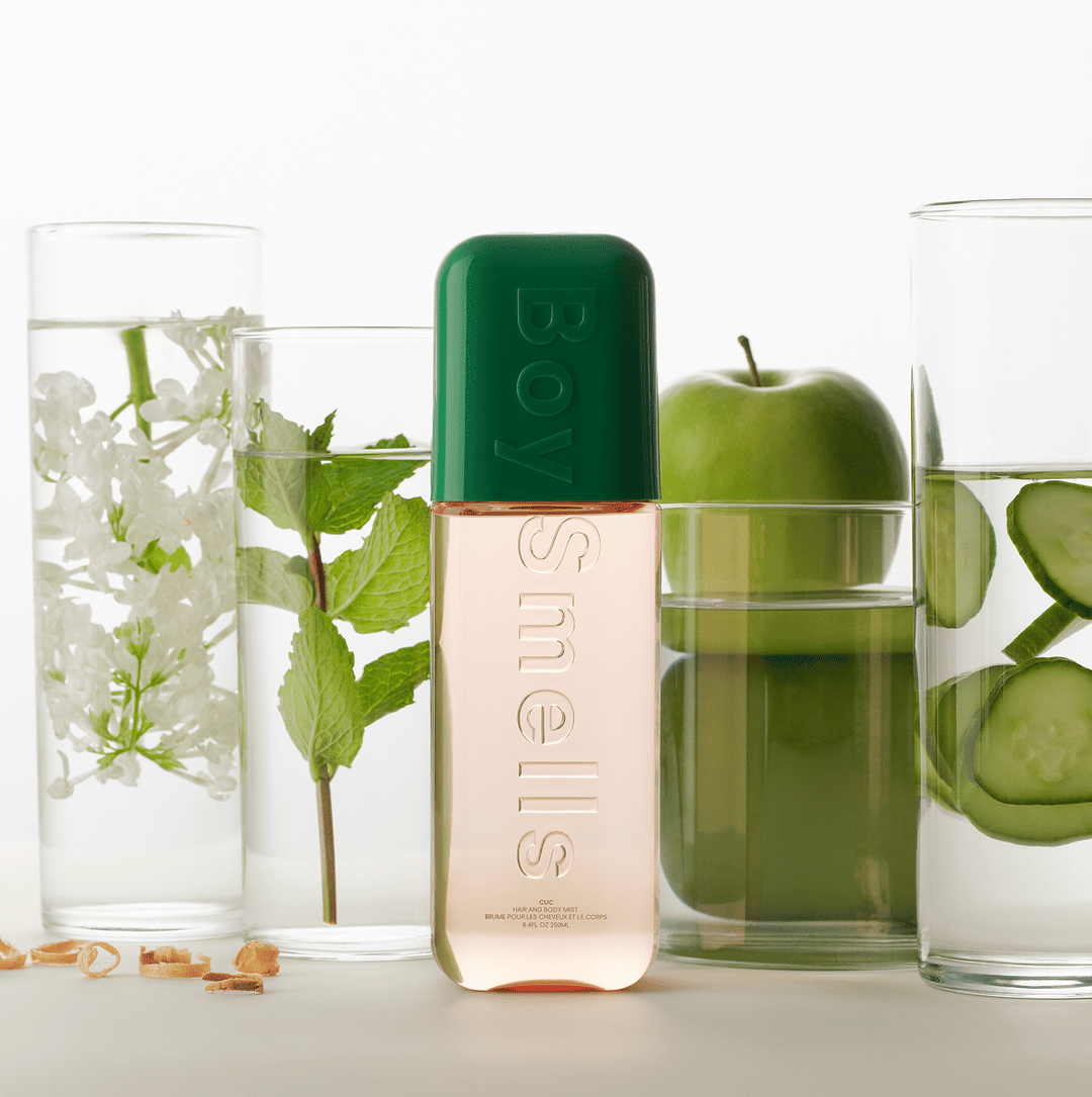 Cuc is an instant rejuvenator—a watery green tonic that feels icy, fresh, cooling. Think: cucumber water with a wink of mint and jasmine, grounded in soft musks. It’s giving open windows, clean sheets, a splash of clarity on your hair, body and aura whenever you need it.