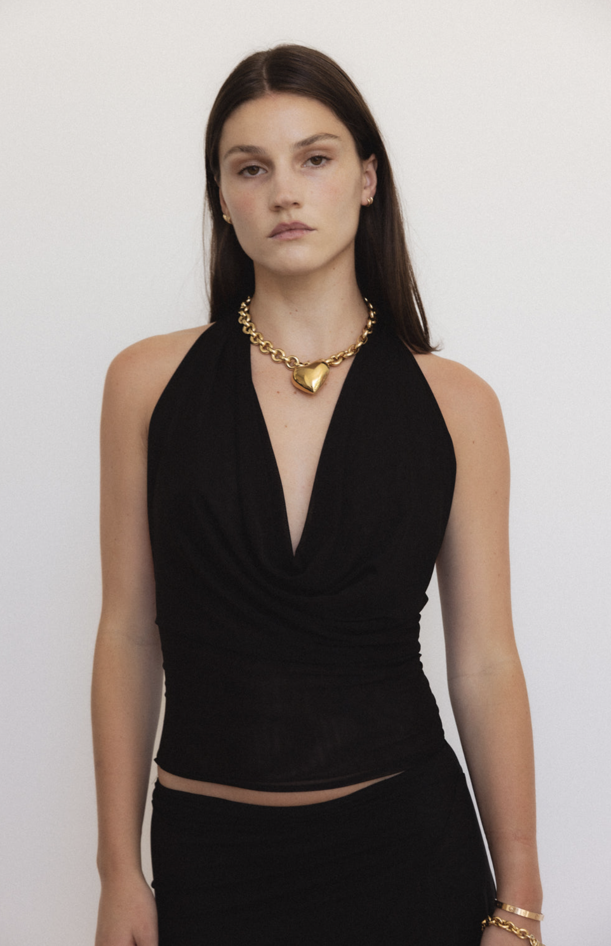 Plunging cowl-neck top with a low back. Double-lined throughout.