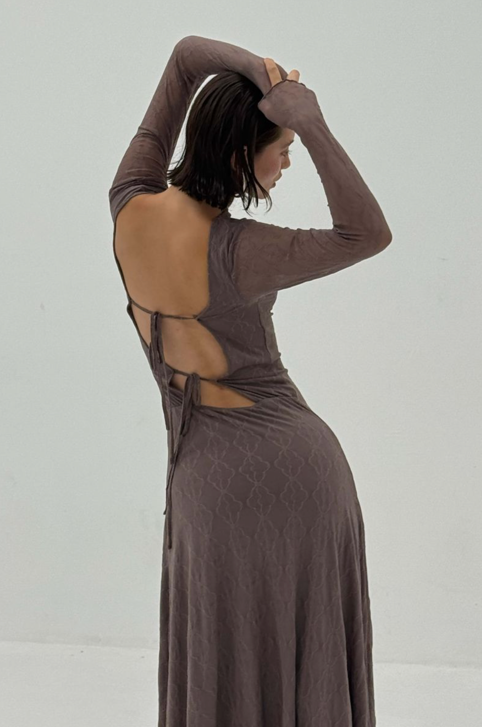 Light as air, bold in form. The Mariposa Backless Dress is crafted from ultra-light stretch lace that feels like a soft second skin. The silhouette is fitted and subtly sheer with a clean, minimal front and an open back that adds unexpected depth. Easy to wear, easy to care for, and designed to move with you from day to night.