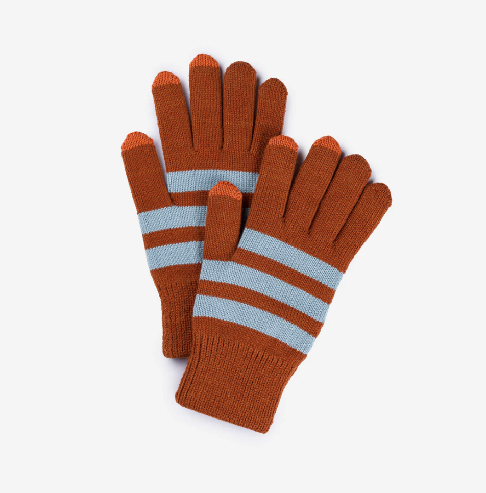 Striped knit gloves—a fun and happy update to a classic winter accessory.