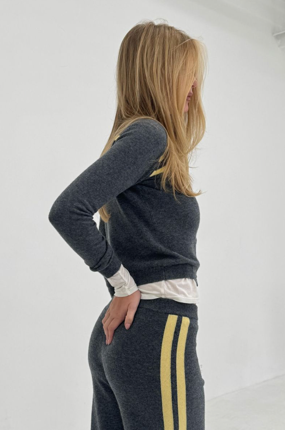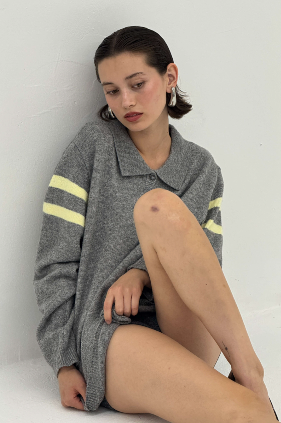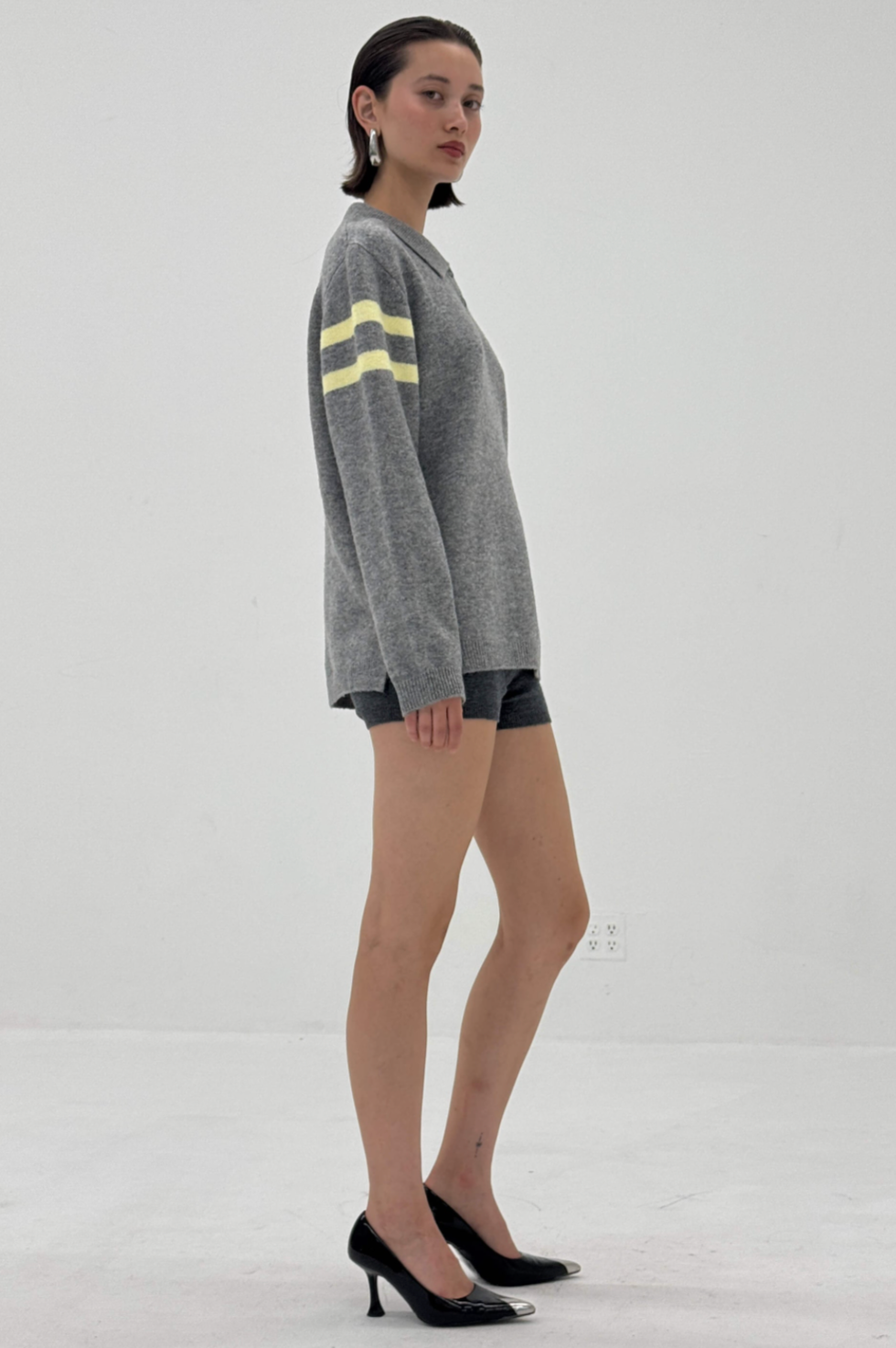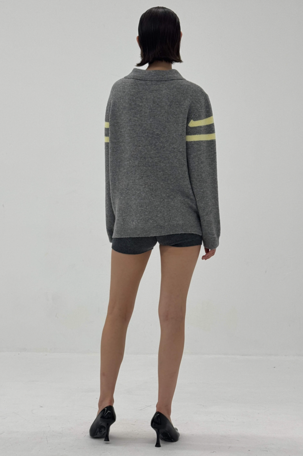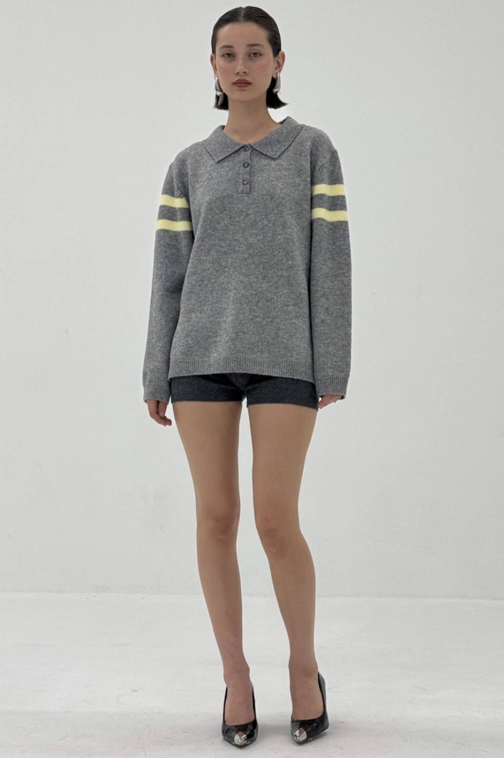 Stripe Polo Sweater in Charcoal/Butter