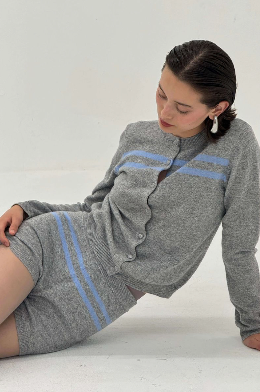 Cashmere Wool Stripe Cardigan in Grey/Blue