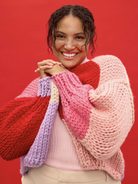 NOT YOUR AVERAGE CARDI – OLIVIA’S A COLOUR-BLOCK PARTY ON YOUR NEEDLES.