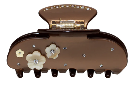 Sweet as can be, this clip is made with beautiful tiny stones and cellulose acetate. Designed with love and ultra-femininity in mind, the Sweetheart Clip will hold your hair from morning until night. Perfect for a low bun or half-up-half-down look.