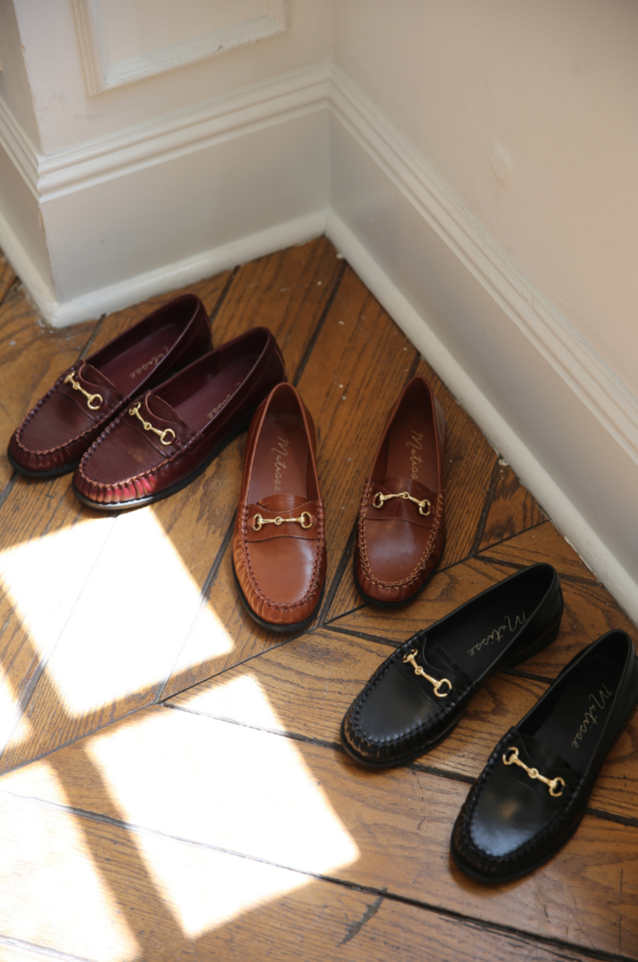 Classic loafer with gold horsebit detail and moccasin-style stitching.