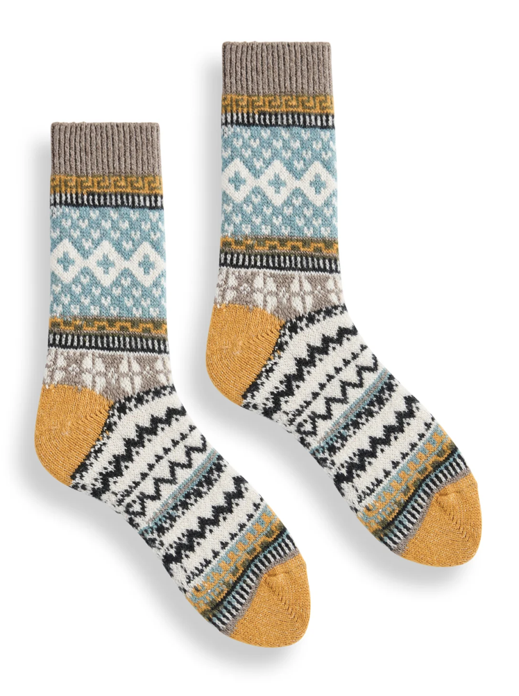 Fairisle Wool Cashmere Crew Socks in Squash